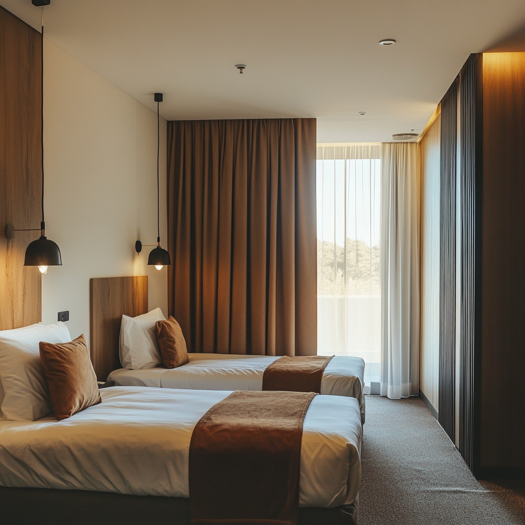 Elite Hotel is a masterpiece of modern design, seamlessly blending elegance with functionality. The hotel's exterior boasts a sleek, contemporary aesthetic, while the interiors feature warm, inviting tones with high-end finishes. Expansive floor-to-ceiling windows flood the space with natural light and provide stunning views of New Zealand’s picturesque landscapes, from rolling green hills to majestic mountains.